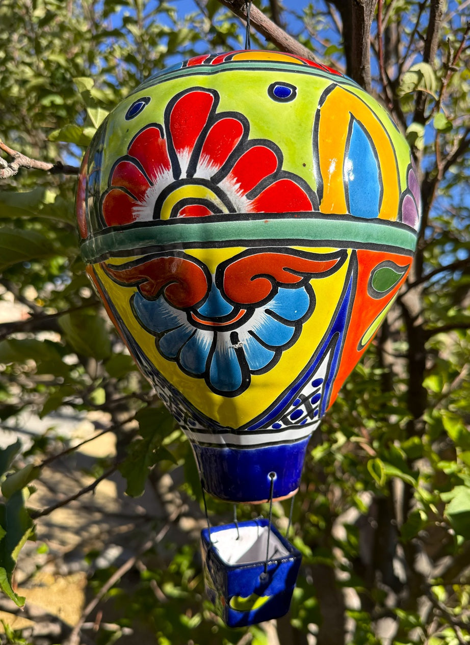 Brighten your space with this handcrafted Talavera Hot Air Balloon. Each piece is meticulously hand painted, showcasing vibrant colors and intricate patterns unique to traditional Talavera artistry. Its striking design adds a cheerful, decorative touch that captures the charm of handcrafted craftsmanship, making it a captivating piece for your home or office. This colorful, one-of-a-kind decor effortlessly elevates any room with a pop of culture and creativity.