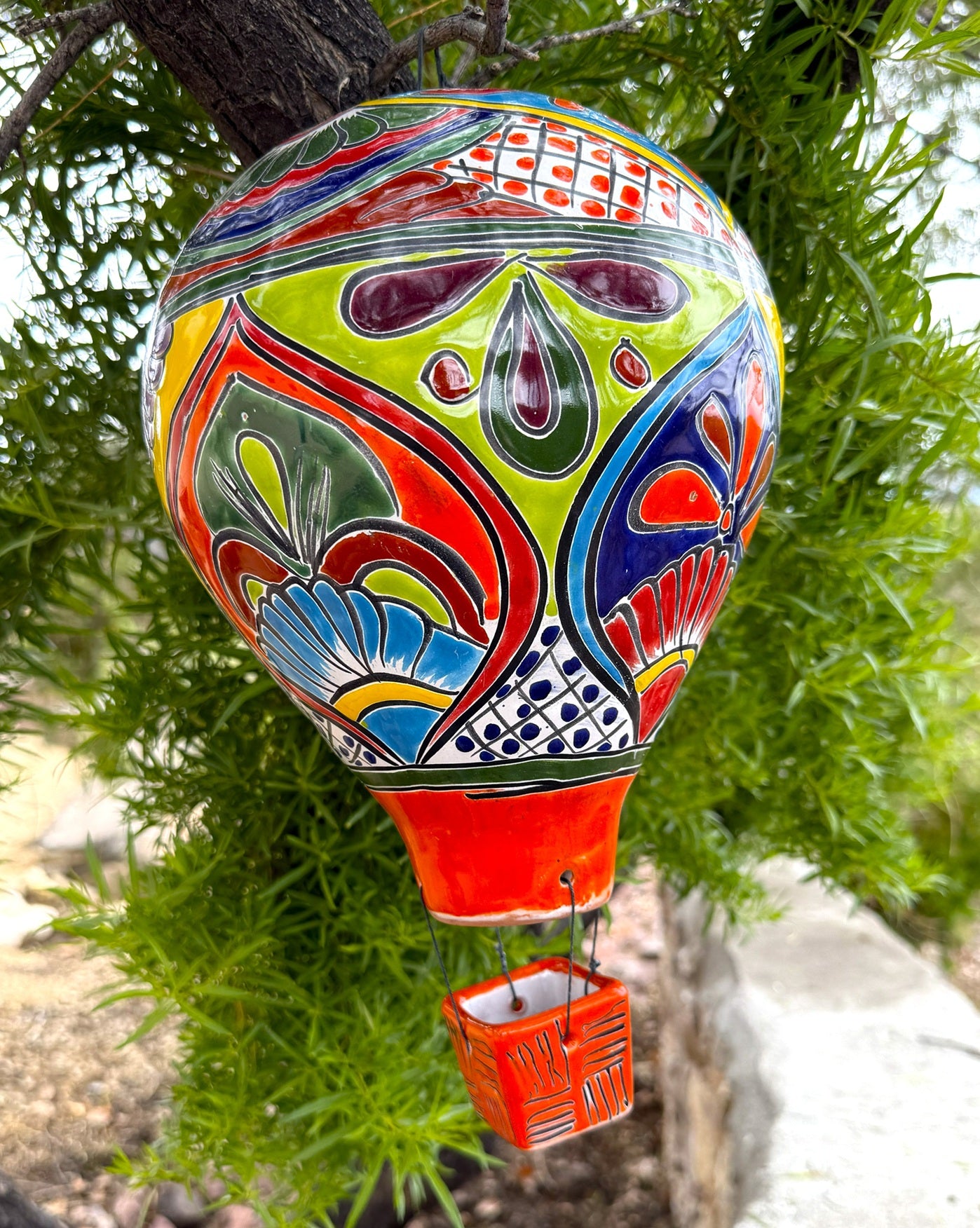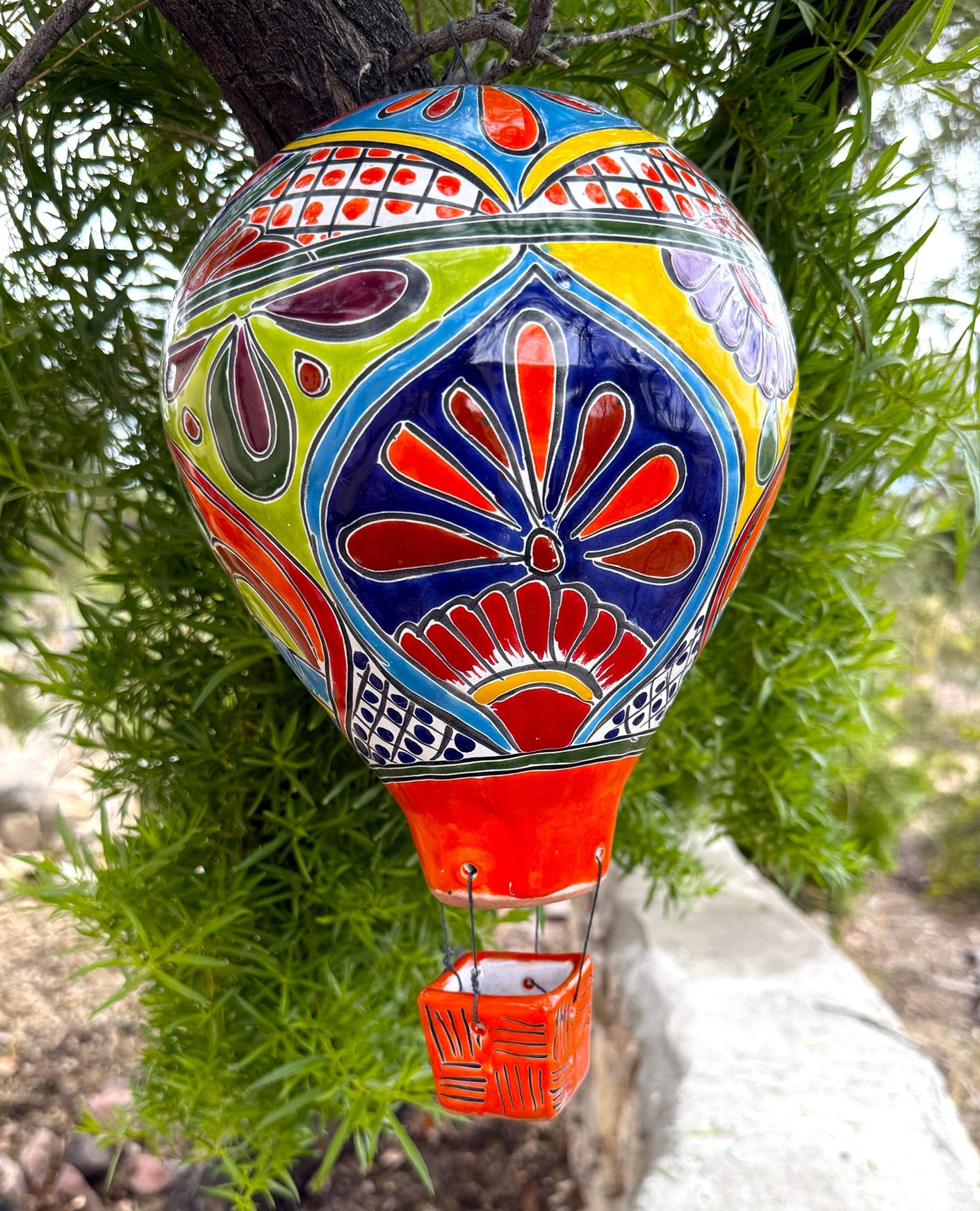 Elevate your decor with this Talavera Hot Air Balloon, meticulously handcrafted and hand-painted with intricate, colorful designs. Each piece showcases vibrant artistry that brings a lively, cultural touch to any space. Perfect as a standout accent, this unique decoration adds charm and elegance while celebrating traditional craftsmanship. Illuminate your room with the beauty of authentic Talavera art in a stunning, eye-catching display.
