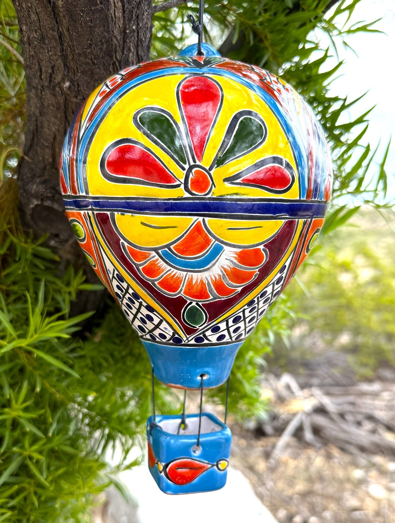Bring vibrant artistry into your space with this Talavera Hot Air Balloon. This colorful, handcrafted piece showcases intrinsic Talavera designs, each detail carefully painted to add a unique charm. Perfect as a decorative accent, it brightens any room with its lively patterns and authentic craftsmanship. Elevate your décor with a touch of cultural beauty that sparks conversation and joy.