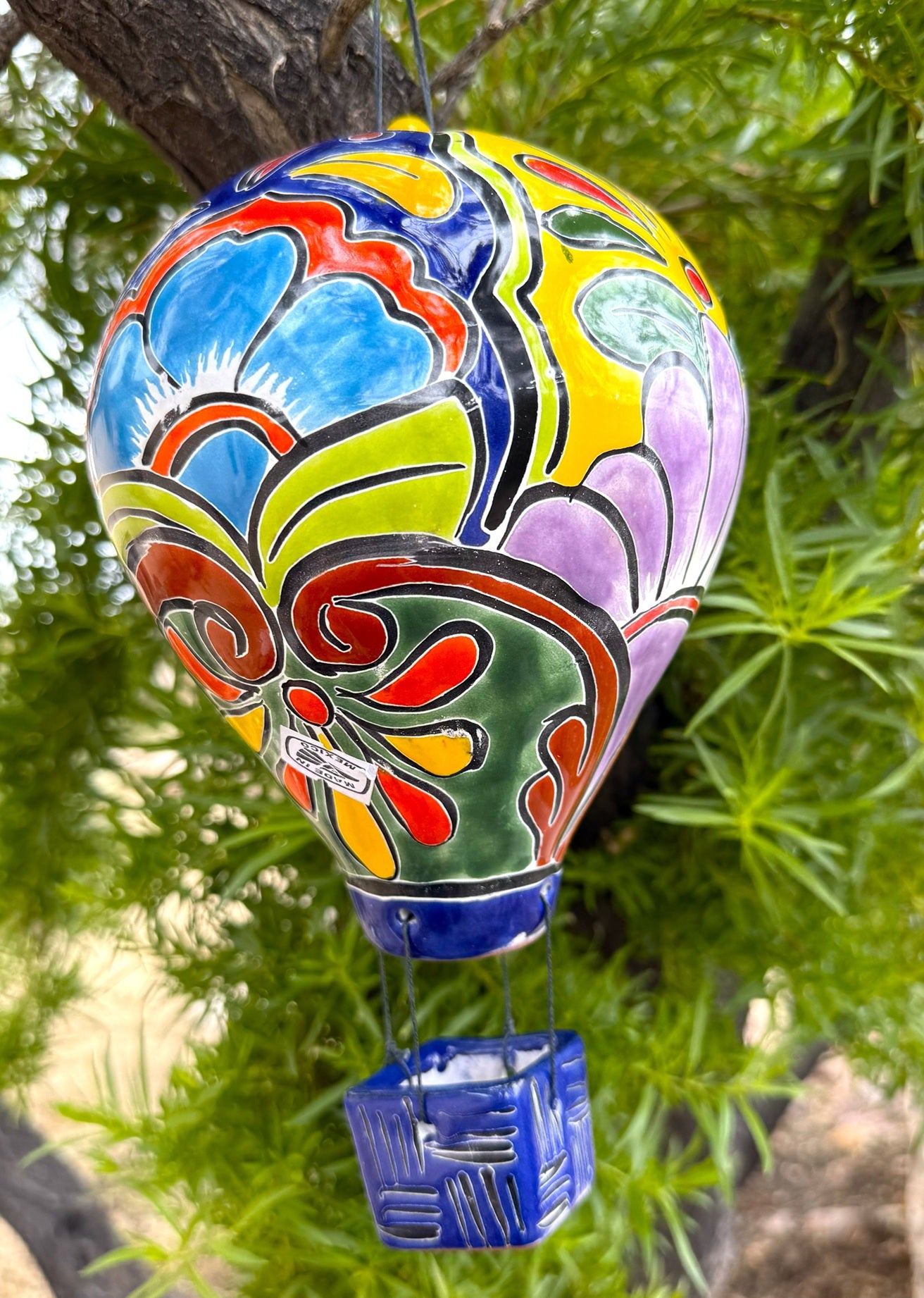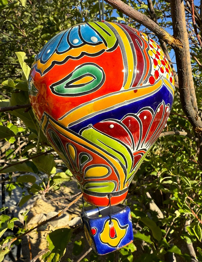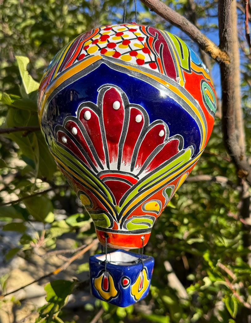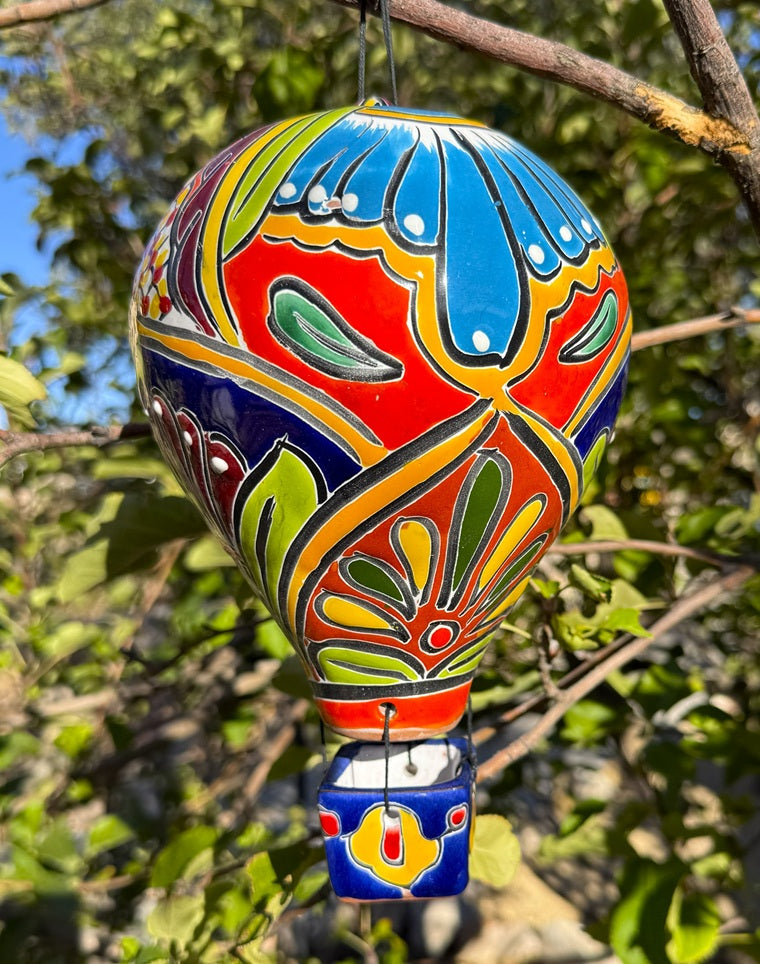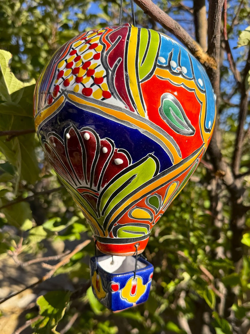 Add a vibrant touch to your space with this Talavera Hot Air Balloon. This colorful, handcrafted decoration features intricate designs that showcase traditional Talavera artistry, making each piece truly unique. Its bright hues and detailed patterns bring lively warmth and cultural charm to any room, perfect for collectors and lovers of artisanal decor. Elevate your environment with this eye-catching statement that celebrates craftsmanship and creativity.